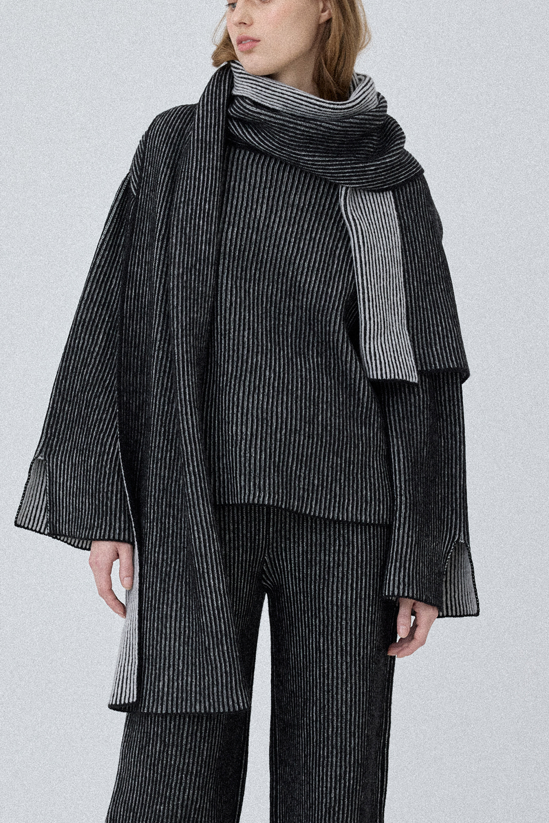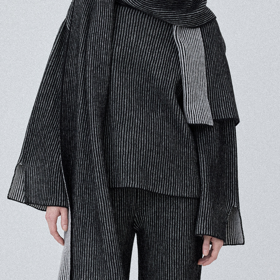 The Long Scarf is knitted using the brioche technique, providing warmth throughout the winter season. Its double-sided design adds extra versatility, allowing it to be worn on either side.