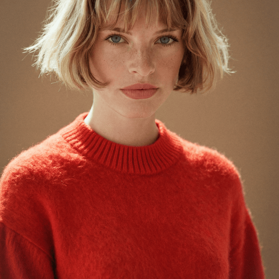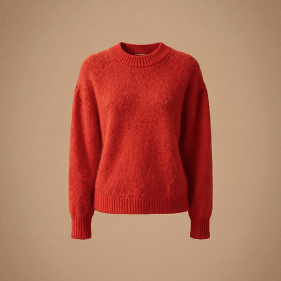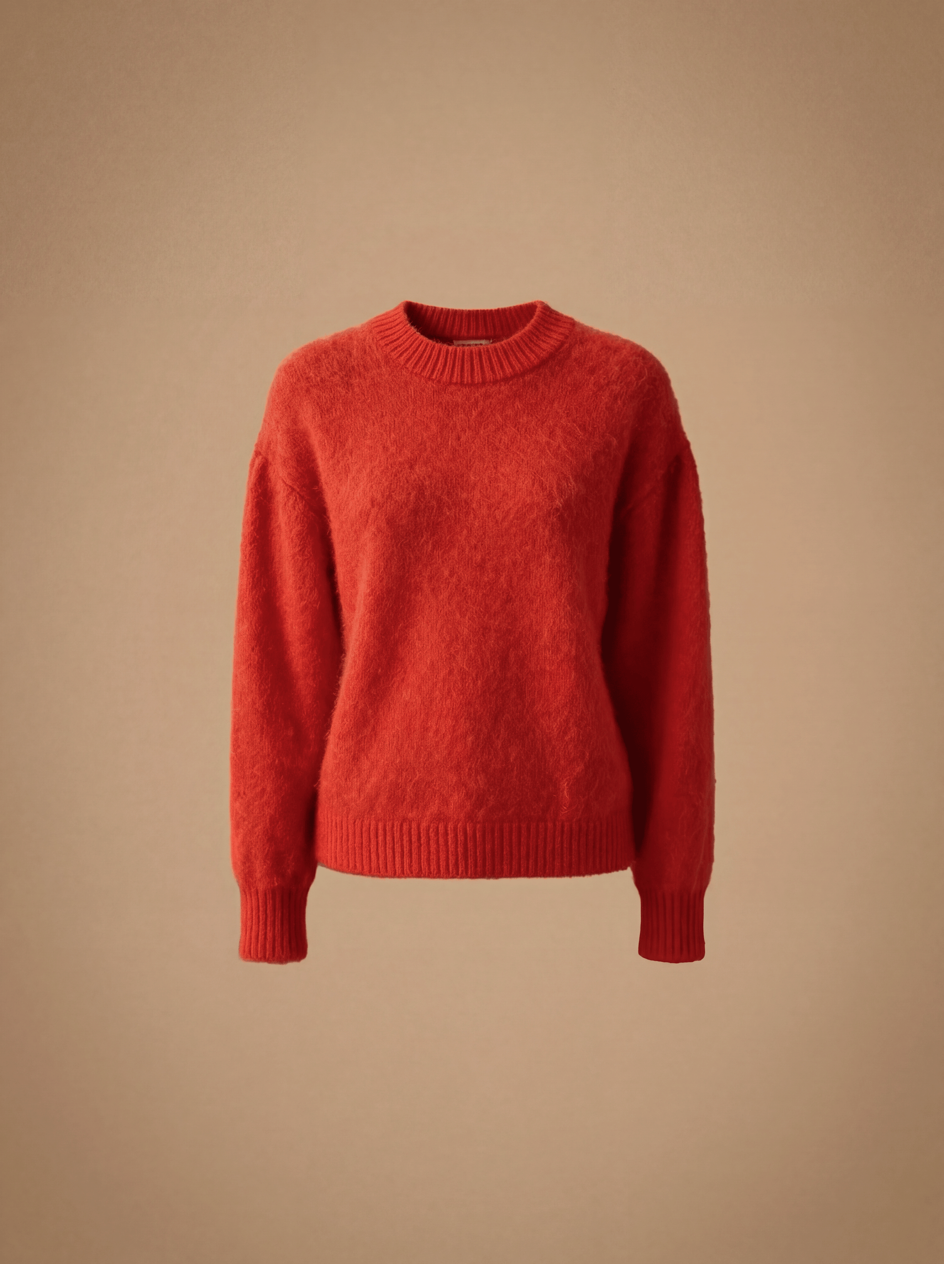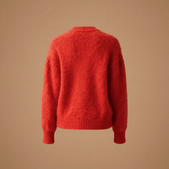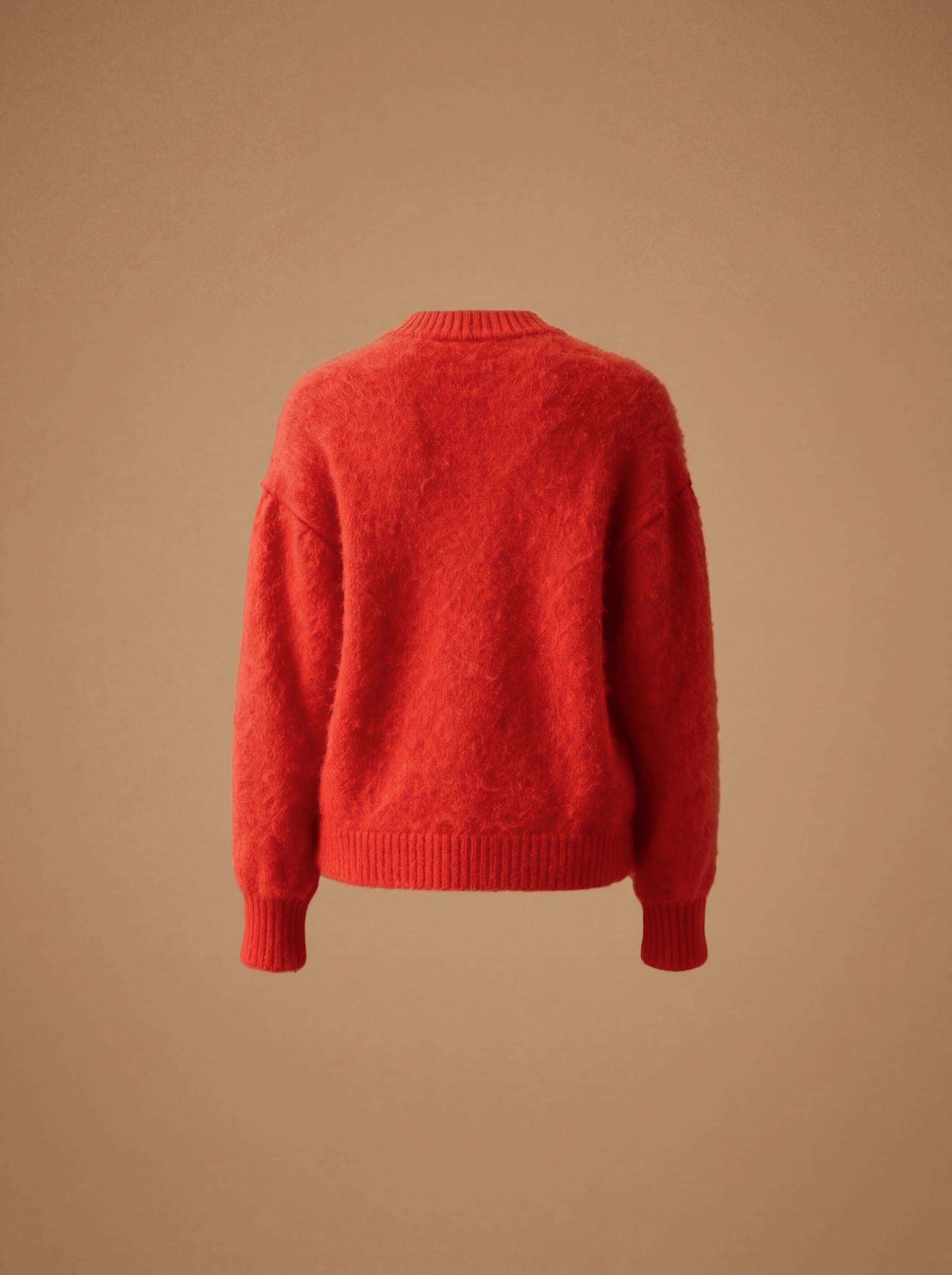 Mohair and wool-blend knitted jumper with a brushed finish, long sleeves, and ribbed neckline, cuffs, and hem.