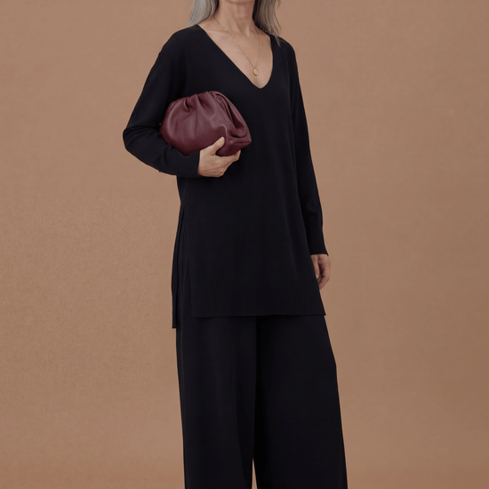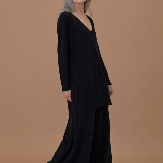 The Relaxed Cosy Trousers are crafted from a luxurious blend of cashmere and fine merino wool. These lightweight, relaxed pants offer a clean, classic silhouette and feature slanted pockets and an adjustable drawstring at the waistband.